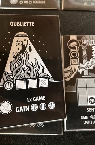 Regarding release plans, I'm hoping to use Morbid Fortress as an experiment. I'll be releasing a print-and-play version through my website AND I hope to create a physical version with The Game Crafter, where I get all of my physical games manufactured. They have a coating that makes cards dry eraseable, and I'm exploring some cool packaging options for a physical release. Expect a Crowd Sale for that one, too.